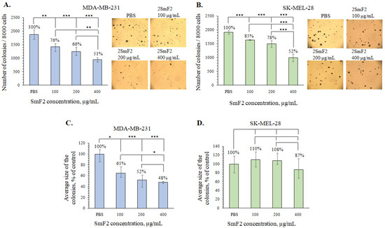 Usoltseva, R.V.; Zueva, A.O.; Malyarenko, O.S.; Anastyuk, S.D.; Moiseenko, O.P.; Isakov, V.V.; Kusaykin, M.I.; Jia, A.; Ermakova, S.P. Structure and Metabolically Oriented Efficacy of Fucoidan from Brown Alga Sargassum muticum in the Model of Colony Formation of Melanoma and Breast Cancer Cells. Mar. Drugs 2023, 21, 486. https://doi.org/10.3390/md21090486