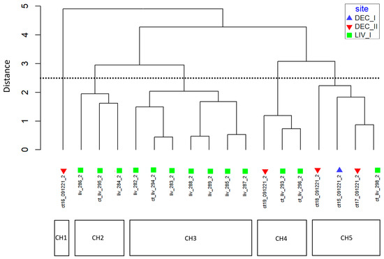 Chemotype clustering of the natural habitat samples. CH = chemotype. DEC-I, DEC-II = sampling sites in Deception Island. LIV = sampling site in Livingston Island.