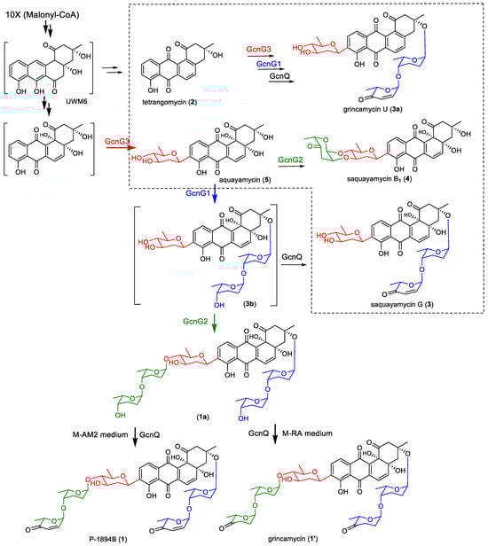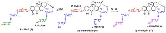 3.2. The Glycosylation Pathway of P-1894B and Grincamycin