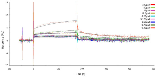 Different concentrations of GeA, spanning from 0 to 100 μM, were injected into the target protein immobilized on the surface of a CM5 chip.