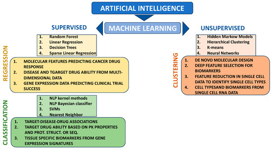 Advancements in AI techniques have revolutionized their applications to this field of research (Figure 1). Indeed, many AI approaches have been developed during the last decade specifically for this aim, allowing the acceleration of the drug discovery process and, at the same time, reducing the high-cost characteristics of conventional methods in terms of money and time [102].