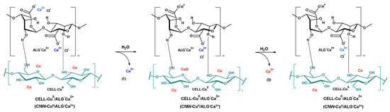The scheme illustrating the transformation of cellulose (CNW) into the final CNW-Cu0/ALG−Ca2+ is presented in Figure 1.