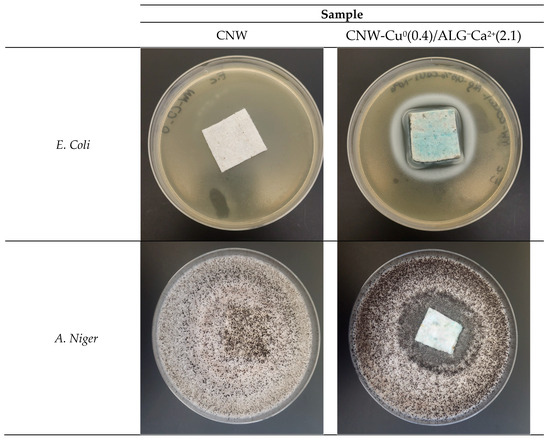 The release of calcium and copper ions from the CNW-Cu0(0.44)/ALG−Ca+2 composites (Figure 6) presents the main factor of their biocidal activity and hemostatic activity.