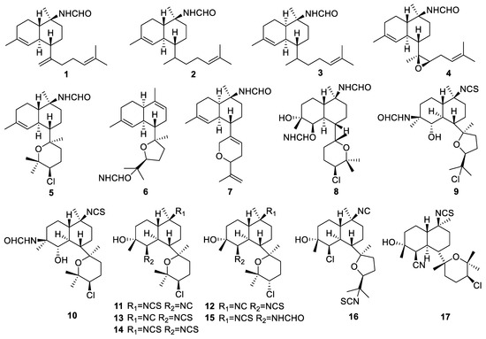 Chemical structures of diterpenes from Acanthella sponges (1–17).