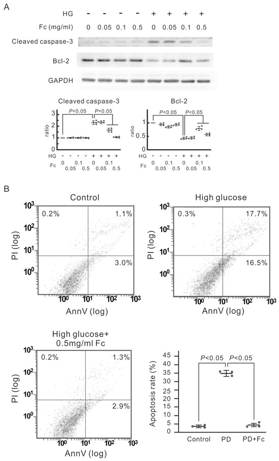 2.2. Oligo-Fucoidan Prevents High-Glucose-Induced MeT-5A Cell Apoptosis