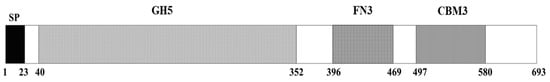- Ohara, H.; Noguchi, J.; Karita, S.; Kimura, T.; Sakka, K.; Ohmiya, K. Sequence of egV and properties of EgV, a Ruminococcus albus endoglucanase containing a dockerin domain. Biosci. Biotechnol. Biochem. 2000, 64, 80–88. [Google Scholar] [CrossRef]