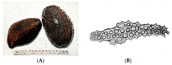 The studied sea cucumbers were collected near Onekotan Island during 36th expedition of the research vessel, “Academic Oparin”, and were identified by an analysis of morphologic features and ossicle shape (Figure 6). The very specific type of ossicles, elongated perforated plates with holes evenly distributed on the surface, tapered at one end and ending in a sharp spike as well as analysis of geographic distribution [38], allowed us to identify the samples as Cucumaria conicospermium. The set of isolated glycosides fits in well with the data obtained earlier for the glycosidic composition of the species [9]. In addition, the set of glycosides inherent to C. conicospermium was broadened with five new compounds and nine known compounds.