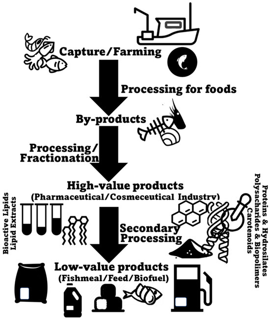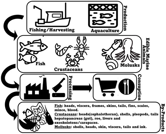 - Olsen, R.L.; Toppe, J.; Karunasagar, I. Challenges and realistic opportunities in the use of by-products from processing of fish and shellfish. Trends Food Sci. Technol. 2014, 36, 144–151. [Google Scholar] [CrossRef]