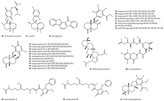 39. Ito, T.; Nguyen, H.M.; Win, N.N.; Vo, H.Q.; Nguyen, H.T.; Morita, H. Three New Sesquiterpene Aminoquinones from a Vietnamese Spongia sp. and Their Biological Activities. J. Nat. Med. 2018, 72, 298–303. [Google Scholar] [CrossRef]