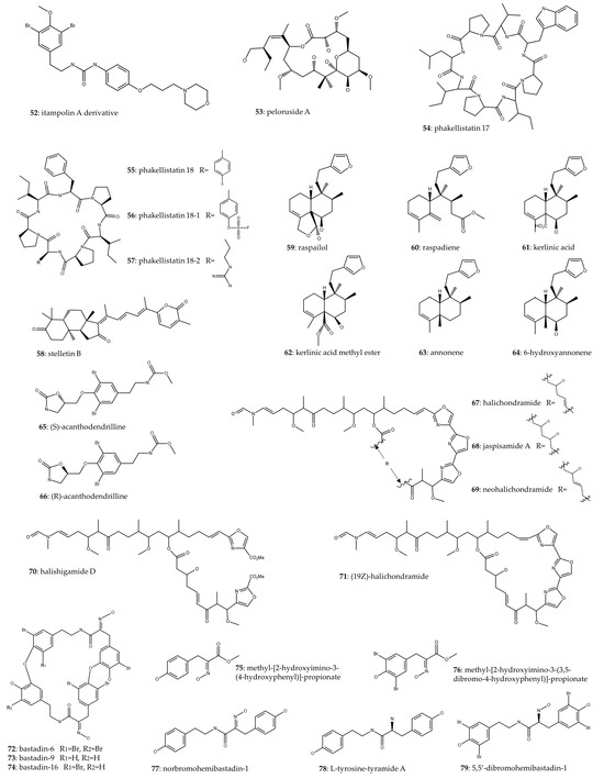 71. Anjum, K.; Abbas, S.Q.; Shah, S.A.A.; Akhter, N.; Batool, S.; Hassan, S.S.U. Marine Sponges as a Drug Treasure. Biomol. Ther. 2016, 24, 347. [Google Scholar] [CrossRef] [PubMed]