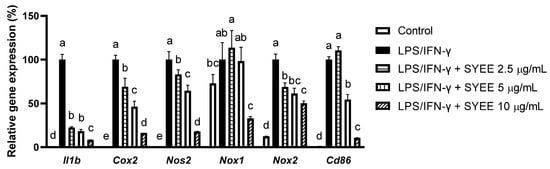 22]. However, their uncontrolled expression can cause chronic inflammatory conditions. Therefore, it is necessary to improve the chronic inflammatory condition by regulating the inflammatory response. The protective effect of SYEE against the LPS-induced inflammatory response in RAW 264.7 macrophages was demonstrated by its inhibition on the mRNA expression of