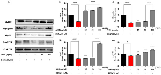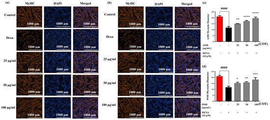 2.3. Immunostaining and Myotube Diameters on MyHC Expression