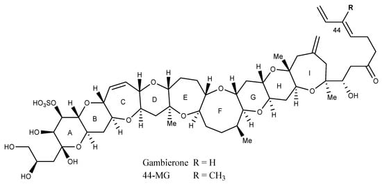 Structures of gambierone and 44-methylgambierone (previously reported as MTX-3; adapted from Murray et al., 2019) [].