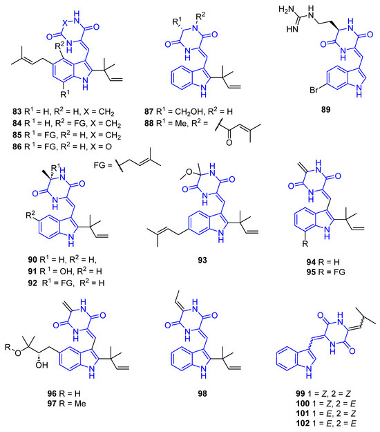 Chemical structures of simple DKPs 83–102 with C3-ethylidene bridge.