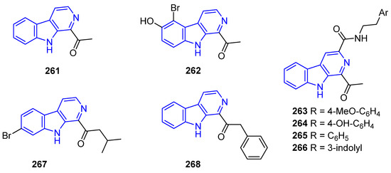 - Zulkifli, S.Z.; Pungot, N.H.; Saaidin, A.S.; Jani, N.A.; Mohammat, M.F. Synthesis and Diverse Biological Activities of Substituted Indole β-Carbolines: A Review. Nat. Prod. Res. 2023, 28, 1–14. [Google Scholar] [CrossRef] [PubMed]