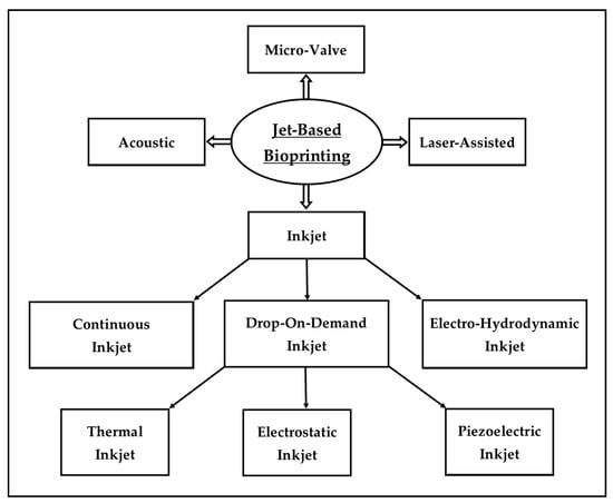 In general, there are four major classes of jet-based bioprinting (Figure 1): inkjet, micro-valve, acoustic, and laser-assisted [9,23].