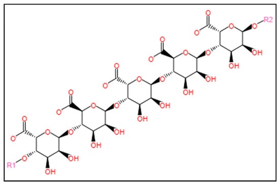 Chemical structure of alginate. The structure was obtained from the MetaCyc database using the keyword “alginate” for the compound search [123].