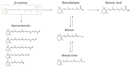 β-carotene’s enzymic metabolism pathway in mammals, as proposed by von Lintig [66].