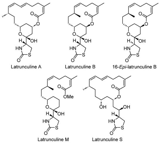 - Khalifa, S.; Ahmed, S.; Mesbah, M.; Youssef, D.; Hamann, M. Quantitative Determination of Latrunculins A and B in the Red Sea Sponge Negombata Magnifica by High Performance Liquid Chromatography. J. Chromatogr. B 2006, 832, 47–51. [Google Scholar] [CrossRef]