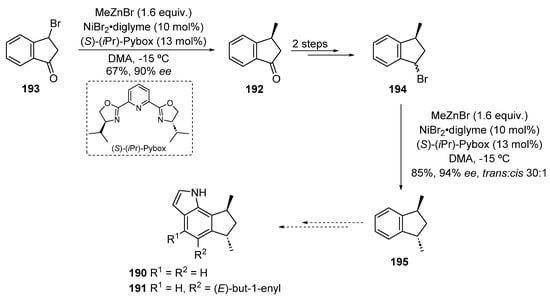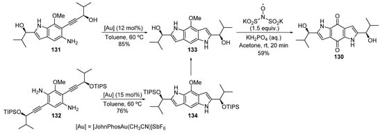 Dictyodendrins are marine alkaloids isolated from the marine sponge Dictyodendrilla verongiformis for the first time in 2003. They are pyrrolo(2,3-c)-carbazole-derived compounds that have shown anti-telomerase activity, which is found in 90% of human tumors [40]. In other words, these marine alkaloids are potential antitumor agents; thus, their synthesis has been a topic of interest among chemists.