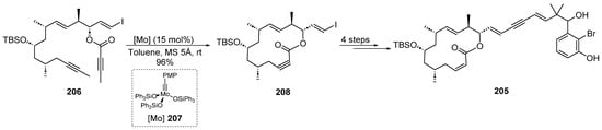 These methodologies have facilitated numerous synthetic routes for the preparation of marine drugs with anticancer activity. The selected examples shown afterward are mostly based on type 1, 2 and 3 metathesis reactions.