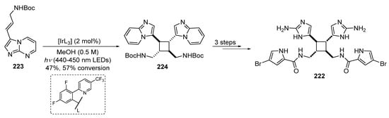 - Nguyen, L.V.; Jamison, T.F. Total Synthesis of (±)-Sceptrin. Org. Lett. 2020, 22, 6698–6702. [Google Scholar] [CrossRef]