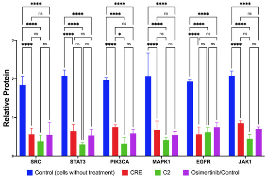 4.3.2. SRC, STAT3, PIK3CA, MAPK1, EGFR, and JAK1 Expression