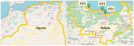 The pharmaceutical industry uses secondary metabolites produced by seaweed, making them an important and versatile marine resource [6]. Seaweeds come in a variety of colors, and all of them contain a high amount of naturally occurring bioactive chemicals that have a variety of biological effects [7]. These include antioxidant, anticancer [8], antibacterial, and antifungal properties [9]. Carotenoids, antioxidant enzymes, polyphenols, ascorbic acid, tocopherols, and other antioxidant molecules all play a part in the antioxidant activity of seaweed [10]. It is also highly appreciated for its nutritional properties rich in minerals (calcium, iron, copper, and iodine; polysaccharides such as agaragar, alginate, and carrageenan; complete proteins with all essential amino acids; and lipids, especially polyunsaturated fatty acids; etc.) [11,12,13]. Seaweed is also rich in micronutrients such as vitamins A, B1, B12, C, D, and E [14], as well as flavonoids, phlorotanins, bromophenols, phenolic terpenoids, and additional phenolic compounds. Furthermore, seaweed’s fat- and water-soluble vitamins have been shown to lessen the incidence of thrombosis, atherosclerosis, and heart disease [15,16]. Free radicals can be neutralized by the phenolic and carotenoid compounds in seaweed, which helps to slow down oxidative deterioration and prevent degenerative diseases [17]. The increased interest in using seaweed is mainly due to its great potential as a source of bioactive substances that can be used in the food, pharmaceutical, and medical industries, as well as in many other industrial applications. Seaweed species abound along Algeria’s 1200 km southern Mediterranean coastline, which is rich in algae varieties. Numerous research projects have been conducted to investigate this rich algal diversity, as Cystoseira compressa, Ericaria mediterranea (formerly Cystoseira mediterranea), Halopteris scoparia, Dictyota fasciola, Padina pavonica (Paheophyceae), Ellisolandia elongate Corallina elongate (Rhodophyta), and Cladophora sp. (Chlorophyta) inventoried in Ténès, northwest Algeria [18], Corallina officinalis (Rhodophyta) in the Gulf of Arzew (west coast of Algeria) [19], in the same region on Oran coasts Asparagopsis taxiformis and Hypnea musciformis (Rhodophyta) were studied [20], Dictyopteris polypodioides (formerly Dictyopteris membranacea in western Algeria at Tipaza [21], and Sargassum muticum at Sidi Fredj (central Algerian coast) [22]. In eastern Algeria, E. mediterranea was sampled on the coast of the wilaya of Bejaia [23]. This algal variety demonstrates Algeria’s ecological richness and diversity and the potential for new scientific discoveries and advancements.