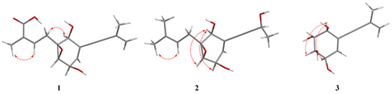 Key NOESY correlations for 1–3.