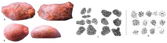 The structural closeness of the glycosides of two sea cucumber species—P. peronii and P. fabricii—pointed out the phylogenetic and systematic similarity of these species. Actually, these two species are closely related but with sufficiently different morphologic features. The body length of P. fabricii is up to 100 mm, while P. peronii’s length reaches only 60 mm. P. fabricii has a higher mouth extremity and larger body scales than P. peronii. The small scales of P. peronii are covered with fine granules and tightened with thin “skin”. The ossicle shapes of these species are also different (Figure 2). So, the phenotypic distinctions, as well as the availability of the new glycoside 1 in P. peronii, corroborated the separateness of these species.