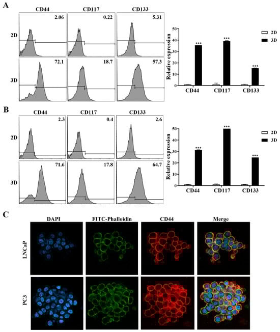 2.6. Prostate Cancer Stem Cell (CSC) Biomarker Expression Was Augmented in MC-B Hydrogels
