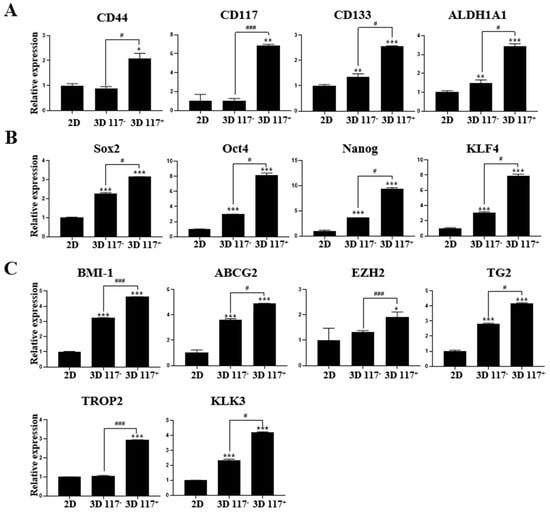 2.7. Stemness and Pluripotency Marker Expression of PC Cells Were Enhanced in MC-B Hydrogels