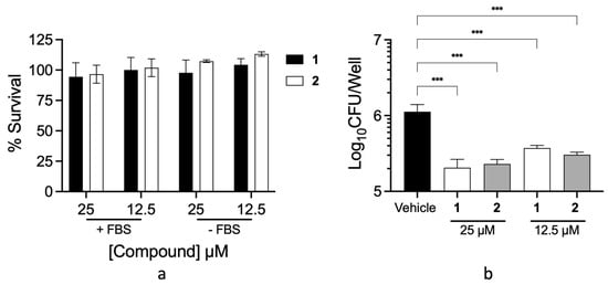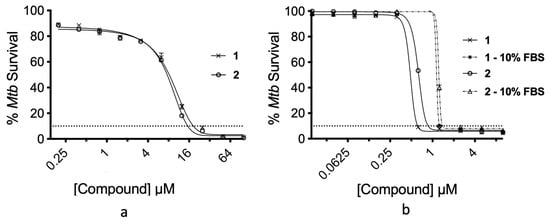 2.3. In Vitro Anti-Tubercular Efficacy of 1 and 2