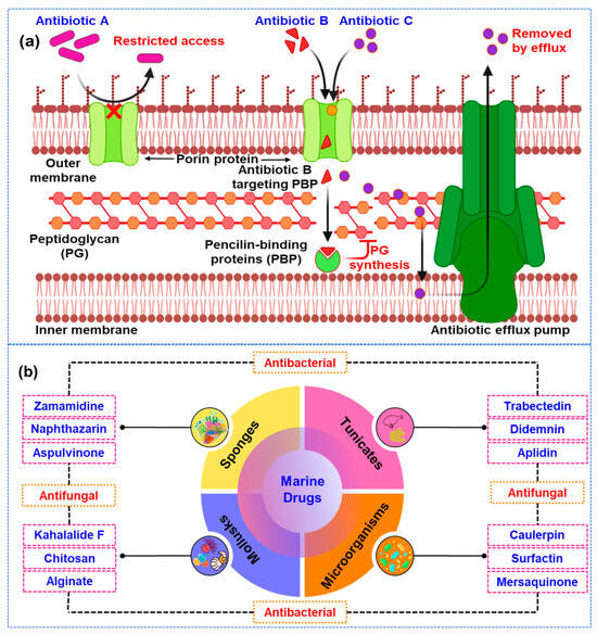 - Wang, W.; Gu, L.; Wang, J.; Hu, X.; Wei, B.; Zhang, H.; Wang, H.; Chen, J. Recent advances in polypeptide antibiotics derived from marine microorganisms. Mar. Drugs 2023, 21, 547. [Google Scholar] [CrossRef] [PubMed]