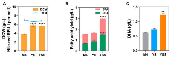 2.4. Biomass Concentration and Fatty Production Analysis of Fermentation-Optimized