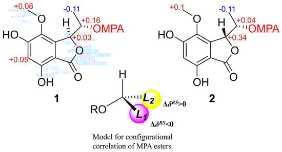 ΔδRS (δR–δS) data for the MPA esters of 1–2.
