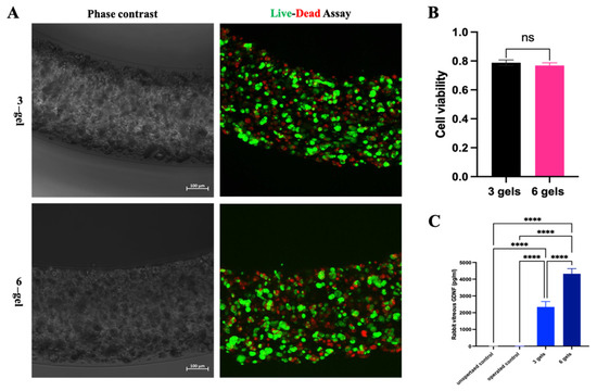 2.2.2. Encapsulated Cell Viability and GDNF Secretion