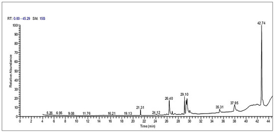 GC-MS chromatogram of the SP ethanolic extract.