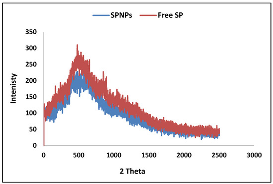 As depicted in Figure 7, the diffractograms of the free SP particles and SPNPs exhibited nearly identical patterns.