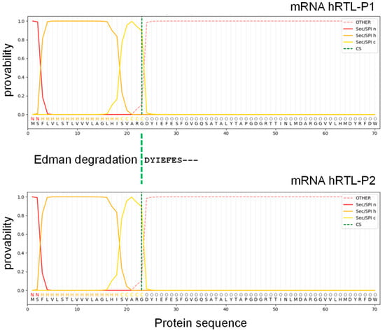Signal peptide sequence prediction of hRTL. The mRNA sequence was assigned to SignalP 6.0 software. N (red), H (orange), and C (yellow) mean N-region, H-region, and C-region of the signal sequence, respectively.