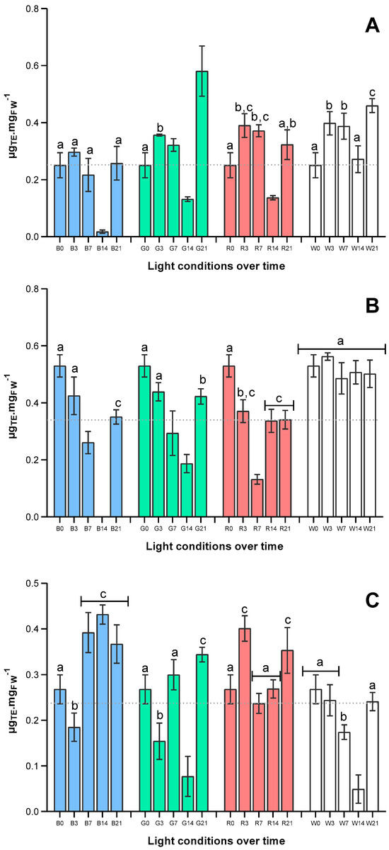 2.3. Effects of Light Quality on Antioxidant Capacity of U. lacinulata