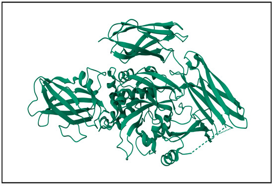 Structure of a representative transglutaminase. The enzyme structure was obtained from the Research Collaboratory for Structural Bioinformatics Protein Data Bank—RCSB PDB (RCSB.org)—using PDB ID 1G0D for transglutaminase from red sea bream [165].