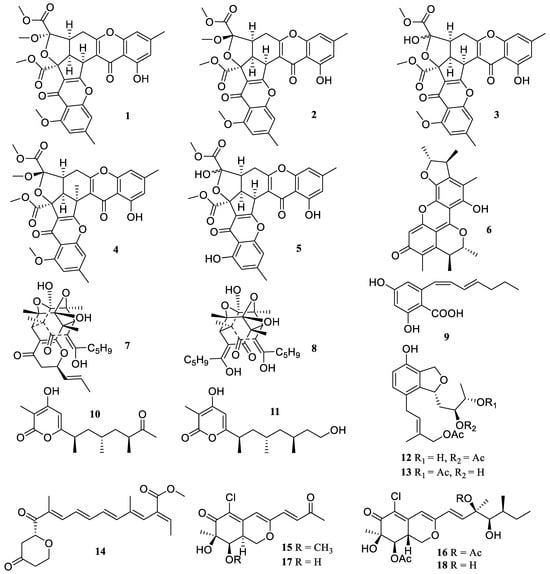 Chemical structures of polyketides (1–18).