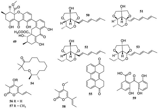Chemical structures of polyketides (49–59).