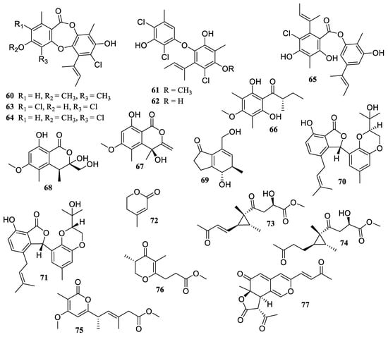 Chemical structures of polyketides (60–77).