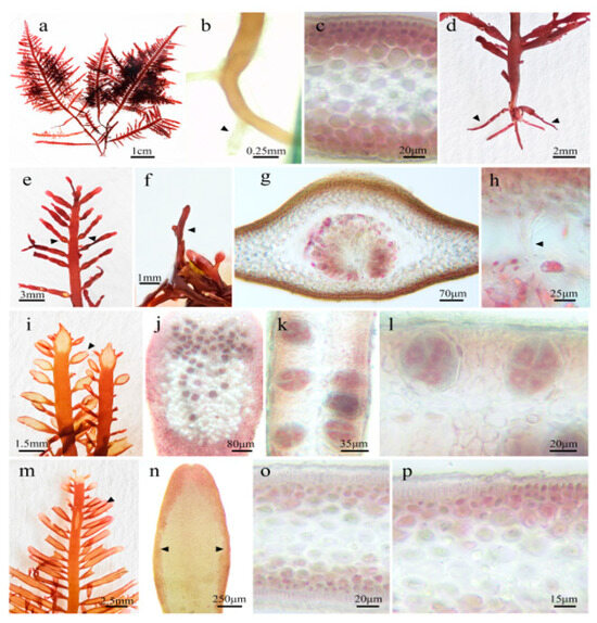 - Xia, B.M. Flora of Chinese Seaweeds; Volume II, Rhodophyta. Part III, Gelidiales, Nemaliales, and Gracilariales; Science Press: Beijing, China, 2004; pp. 5–7. [Google Scholar]