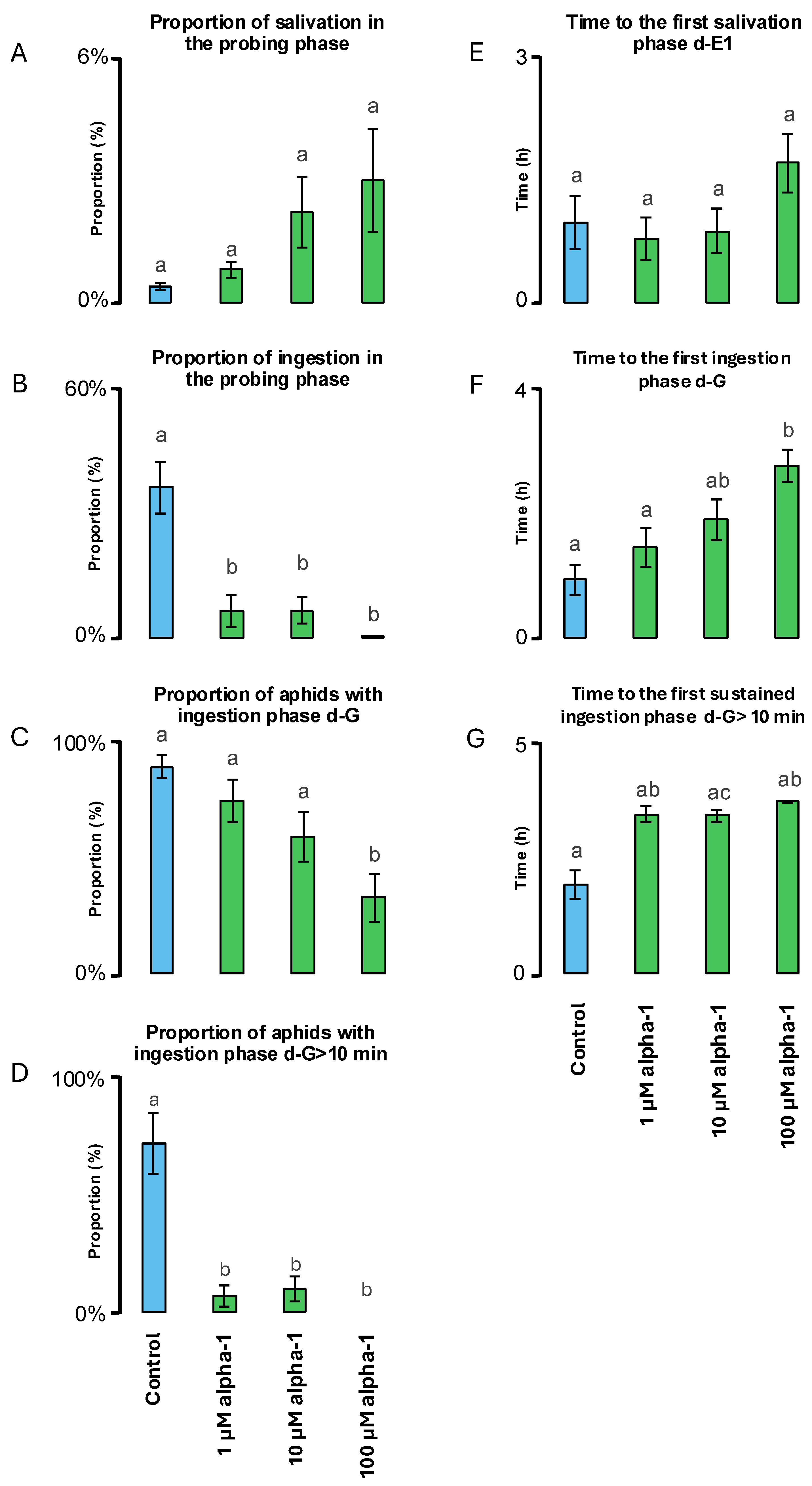 2.3. Effects on Aphids’ Feeding Behaviour