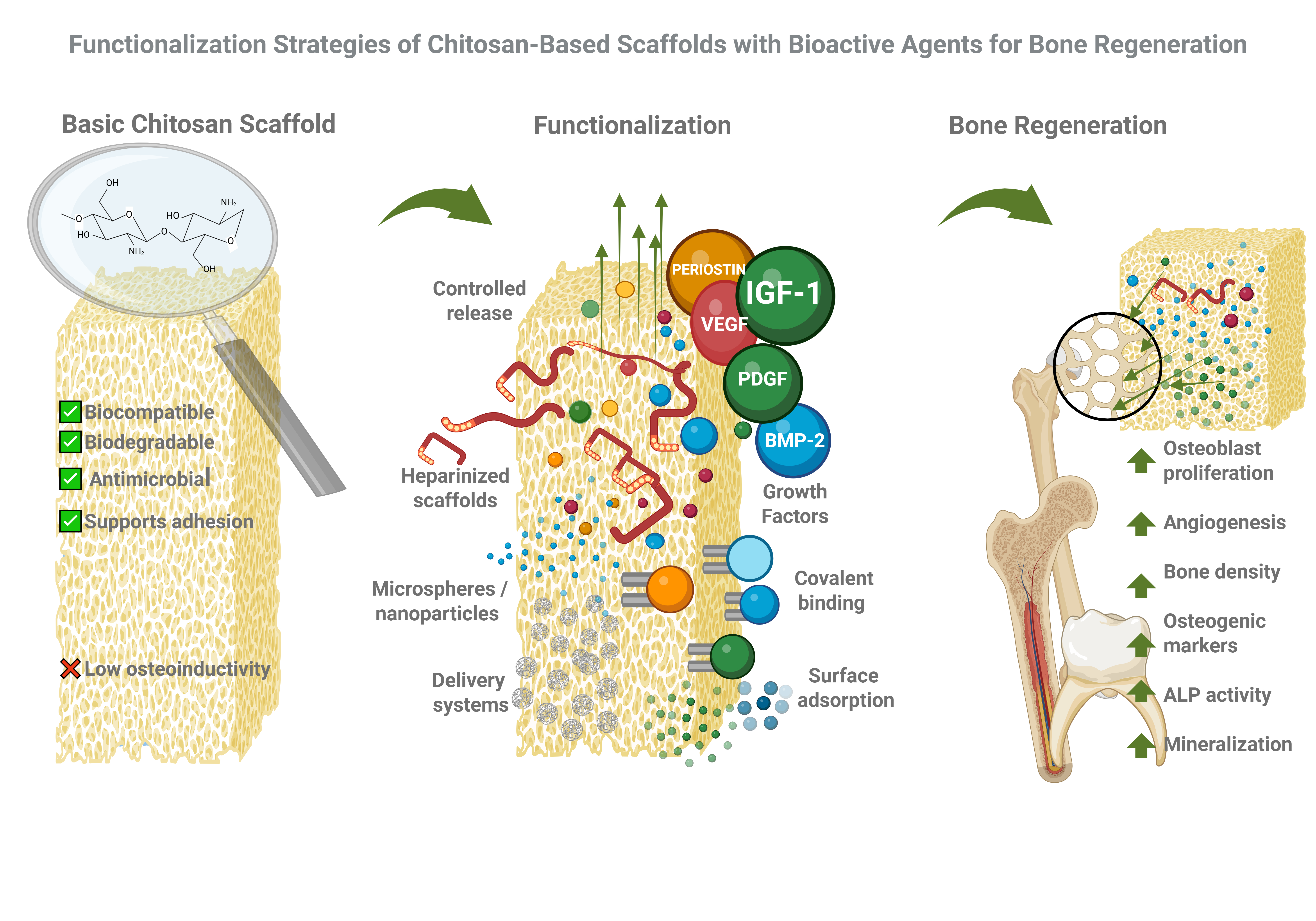 - Studies examining the effect of adding growth factors to chitosan scaffolds on bone regeneration.