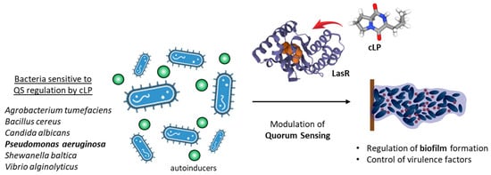 - Campbell, J.; Lin, Q.; Geske, G.D.; Blackwell, H.E. New and unexpected insights into the modulation of LuxR-type quorum sensing by cyclic dipeptides. ACS Chem. Biol. 2009, 4, 1051–1059. [Google Scholar] [CrossRef] [PubMed]