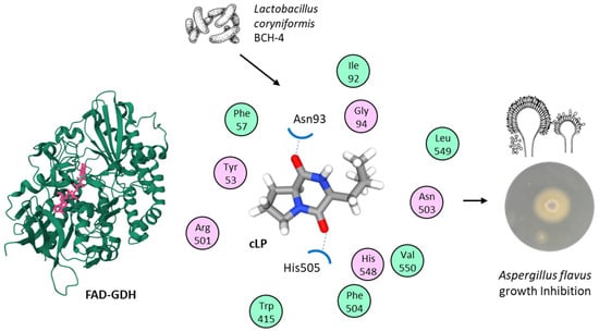 | Lactobacillus coryniformis BCH-4 (Loigolactobacillus coryniformis BCH-4) | B (g+) | Identification of cLP and characterization of its antifungal action against Aspergillus flavus and potential target proteins. Bioprotective activity. | [59] |